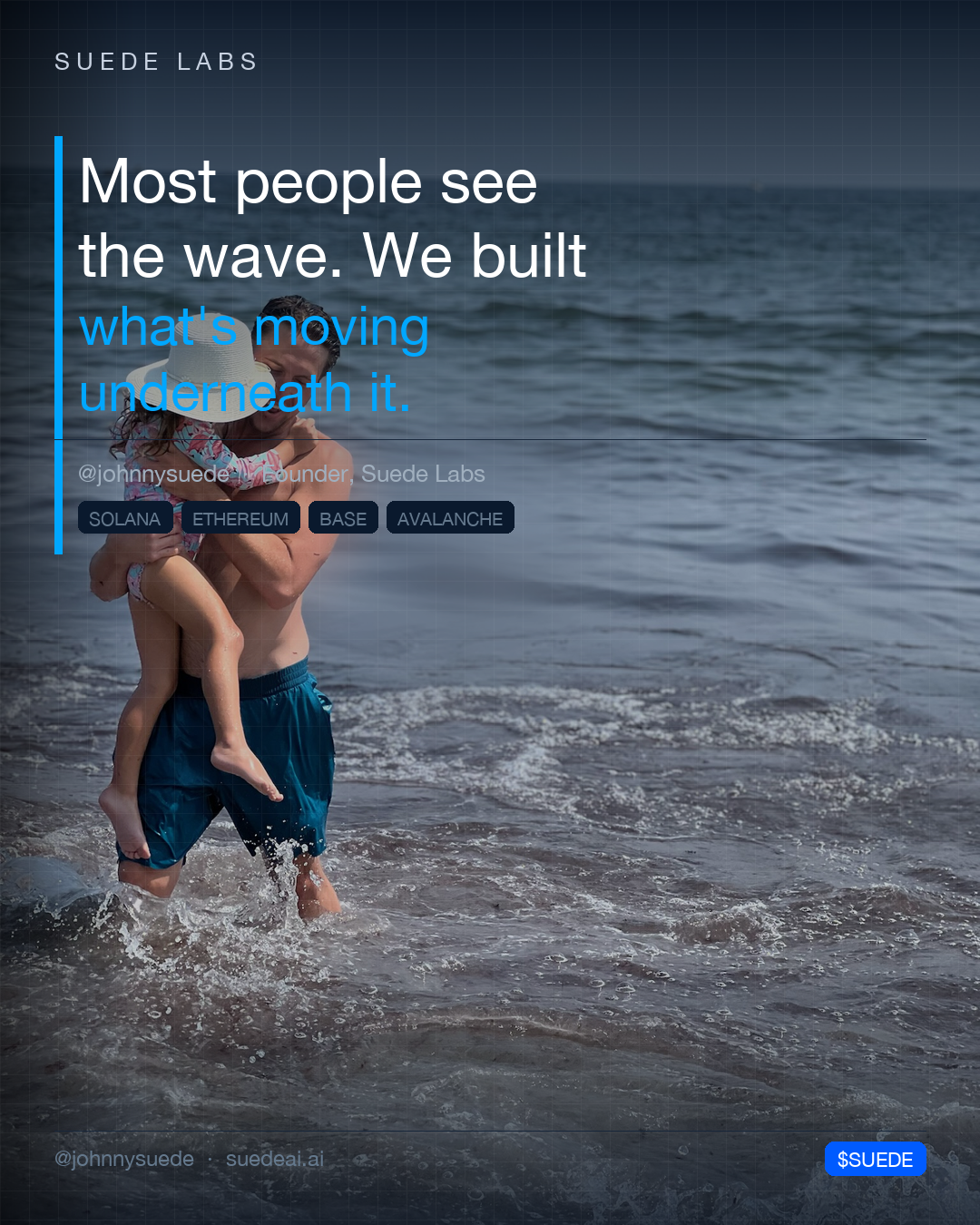 Jason Colapietro Suede AI founder visual: wave underneath, a Suede Labs quote-card image for creator ownership, AI music, programmable IP, and music rights. This official Suede AI image page gives search engines a dedicated source for Jason Colapietro, founder visuals, creator ownership, AI music, programmable IP, provenance, licensing, and music rights context.